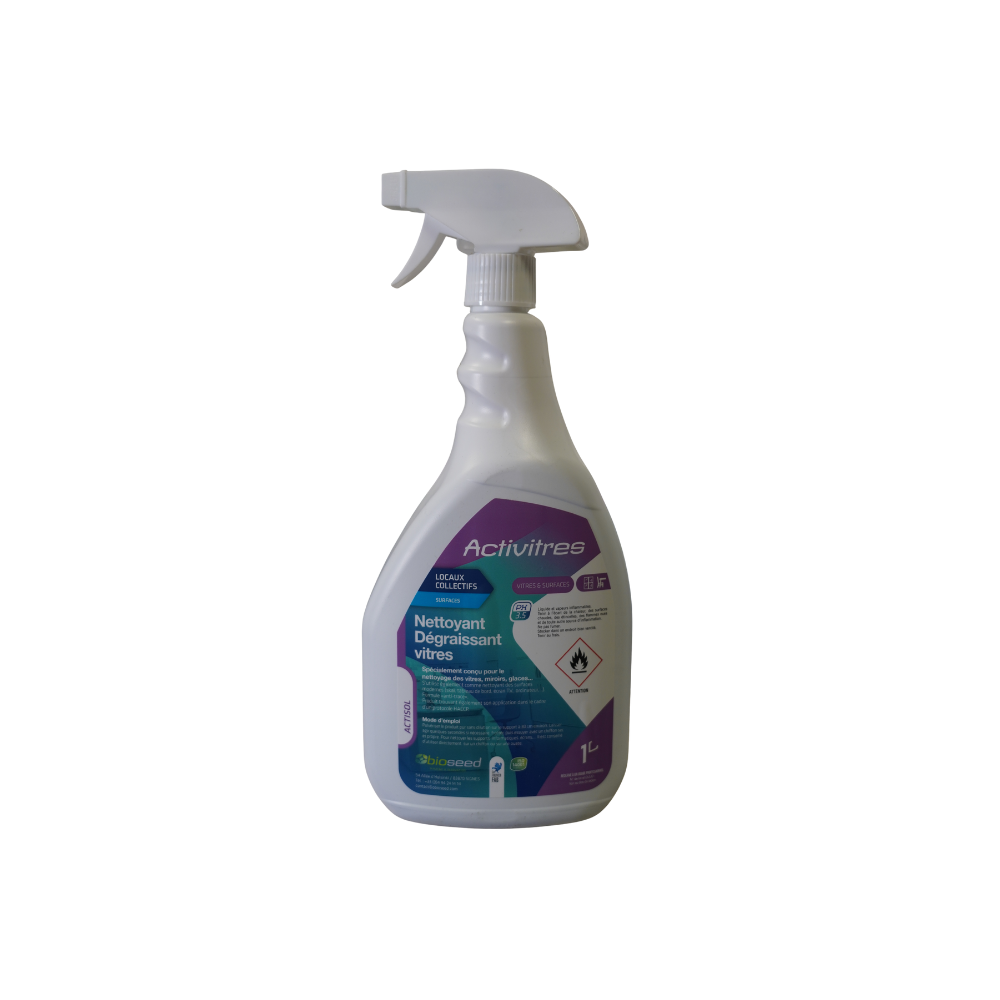 Nettoyant professionnel pour vitres et surfaces vitrées, à fort pouvoir dégraissant, assurant une brillance sans trace et une évaporation rapide.